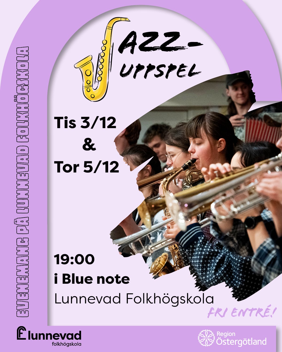Lunnevads folkhögskola Lunnevads folkhögskola, VikingstadJazzuppspel i Blue note på Lunnevad Folkhögskola kl 19.00 - 3 jazzensembler.